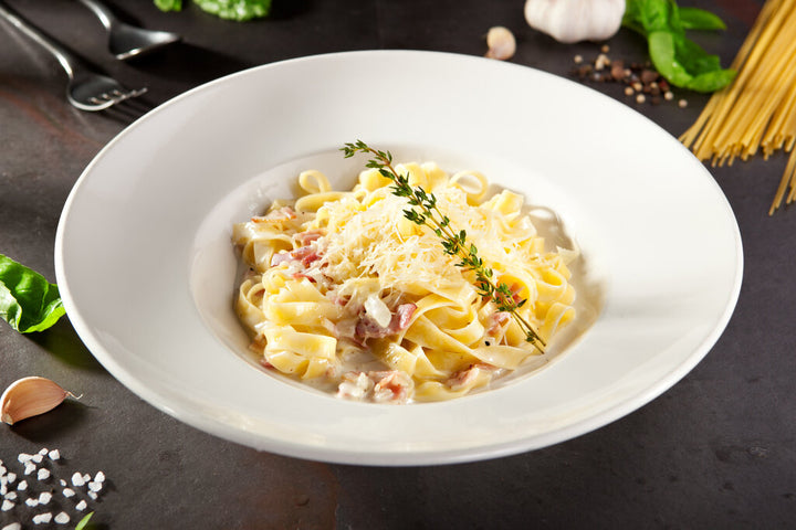 Creamy carbonara is comfort food beyond delight, and it's a lot easier to make than you might realize! Here's our classic creamy fettuccine carbonara recipe!