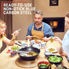 When it comes to steel, carbon is durable and strong, yet not as heavy as cast iron. This pre-seasoned wok is a perfect choice for an Asian frying pan or a large wok pan.