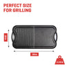 Because it is oven-proof, the cast iron grill griddle is also perfect for roasting meats or vegetables. The built-in handles on the pan make it easy to move from stovetop to the oven. It even makes it possible to safely move it on and off a campfire!